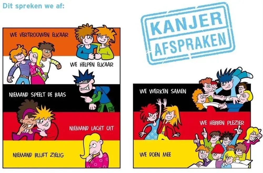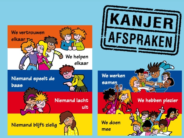 Wij zijn een Kanjerschool! Onze leerkrachten zijn opgeleide kanjertrainers en geven kanjerlessen. Maar wat is de kanjertraining nu eigenlijk? De kanjertraining richt zich op de sociaal-emotionele ontwikkeling van kinderen. De kinderen krijgen inzicht in hun eigen gedrag en het gedrag van de ander door verhalen en oefeningen. Door de kanjertraining leren de kinderen om te gaan met hun gevoelens, te luisteren naar anderen, conflicten op een goede manier op te lossen en voor zichzelf op te komen.